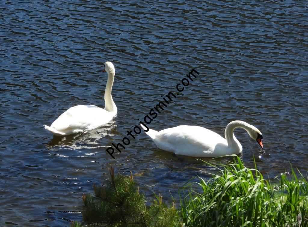 7. A swan with a cygnet and a young duck in the background, photographed on a beach near Nyckelvicken, August 2025.