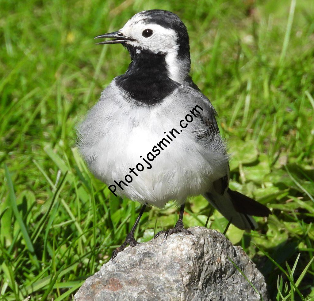 5. A white wagtail is perched on the lawn in a park in Södermalm on a sunny spring afternoon. A white wagtail is very friendly and, from my experience, they recognize people. Sometimes, if you feed them, they can follow you and be your companion while you walk through the park or forest.