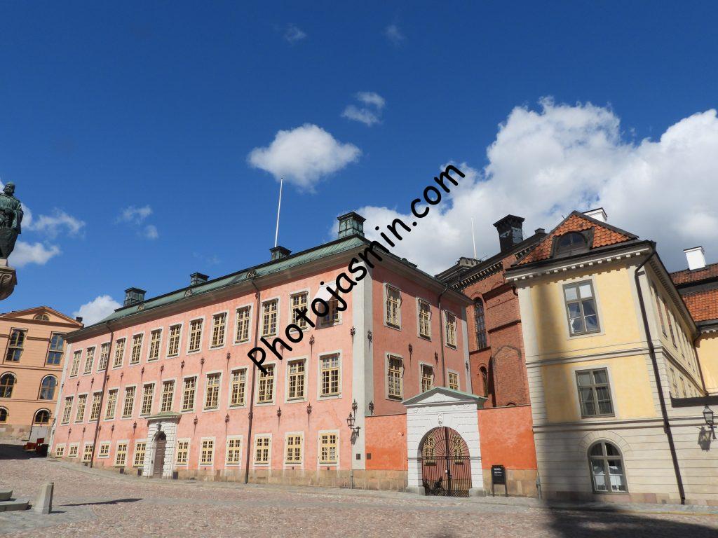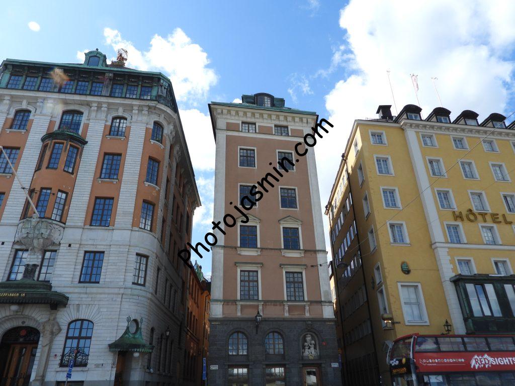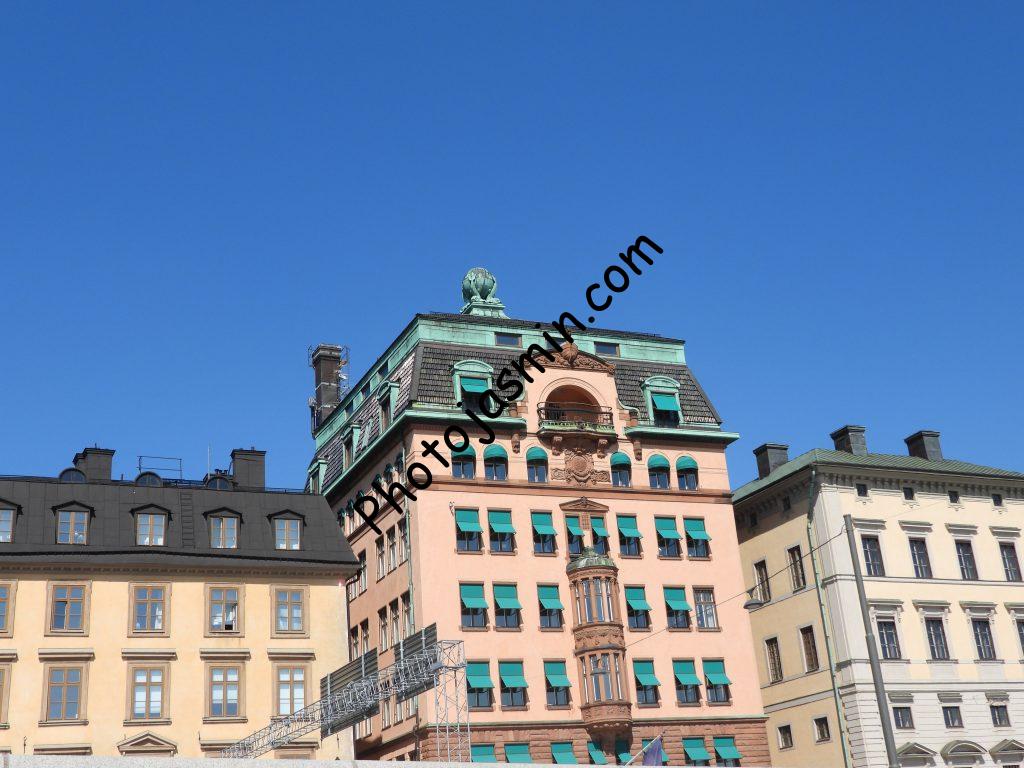 The buildings on the east side of Gamla Stan have a variety of colors.